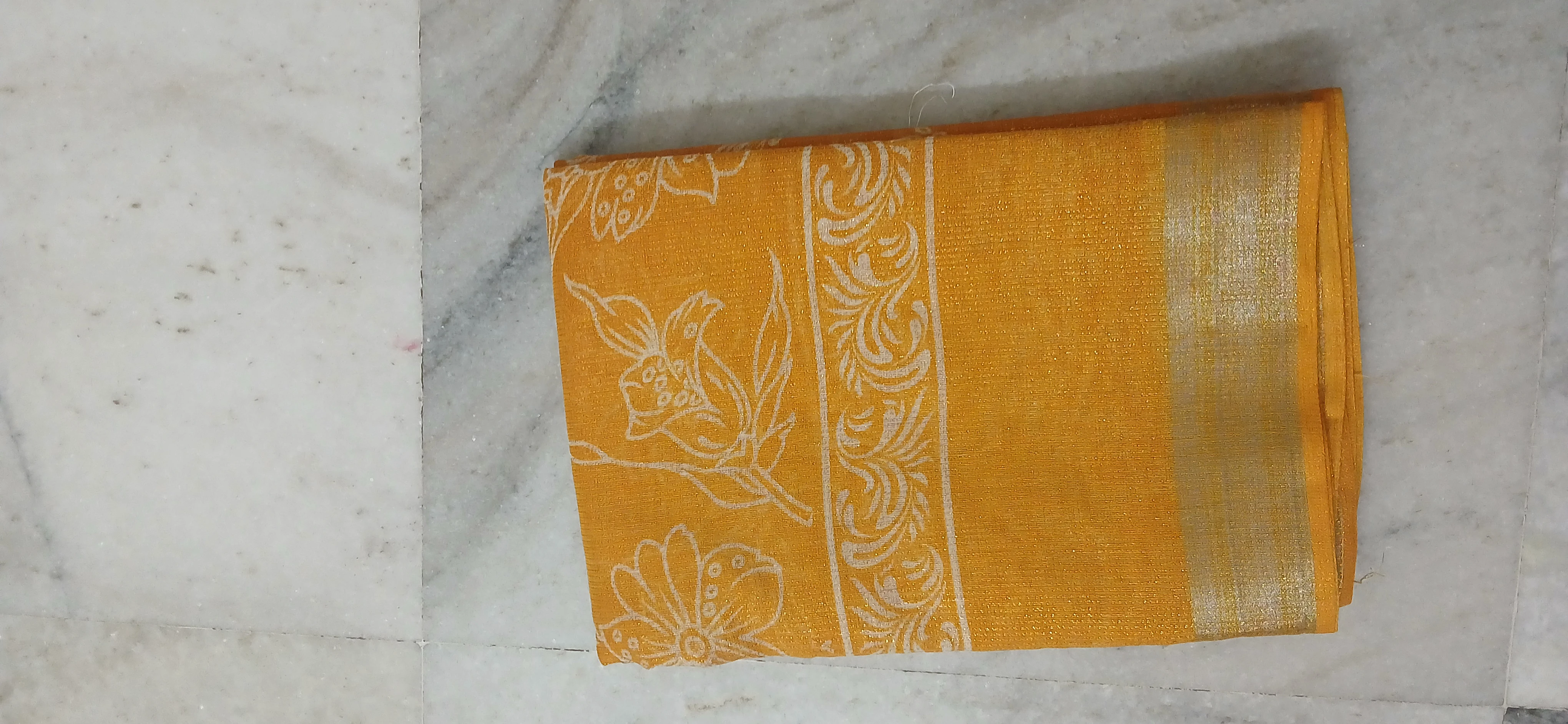 vate your ethnic wardrobe with this elegant mustard yellow saree, beautifully adorned with silver zari floral woven motifs and a graceful zari border. Crafted from soft, lightweight fabric, this saree offers a subtle sheen and comfortable drape, making it perfect for festive occasions, family functions, and traditional celebrations. Pair it with a matching or contrasting blouse to complete the timeless ethnic look.