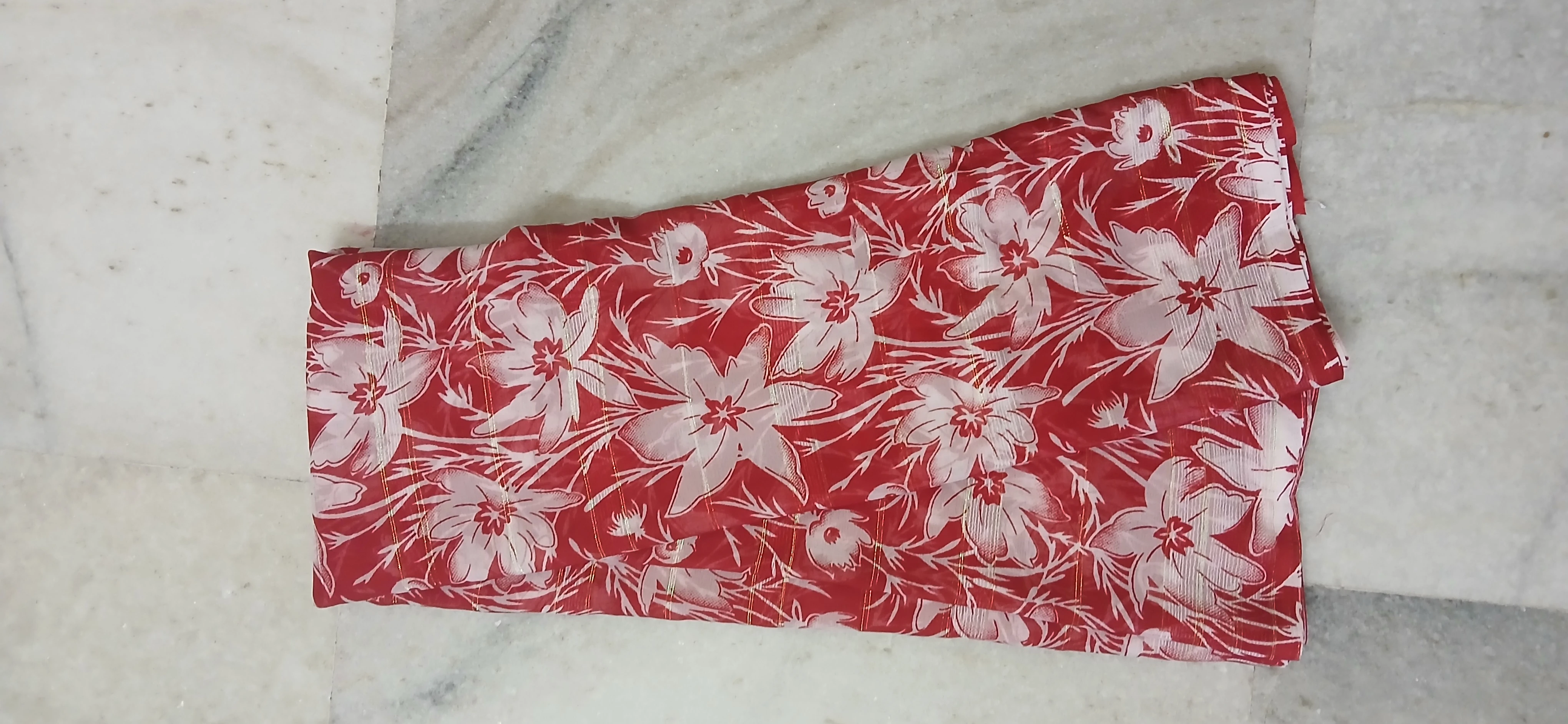 Elevate your everyday ethnic style with this elegant red floral printed saree. Crafted from lightweight fabric, this saree features delicate white floral motifs spread across a vibrant red base, giving it a fresh and graceful appeal. Easy to drape and comfortable to wear, it is perfect for daily wear, casual outings, office wear, or small gatherings. Pair it with a contrasting or matching blouse to complete the look.