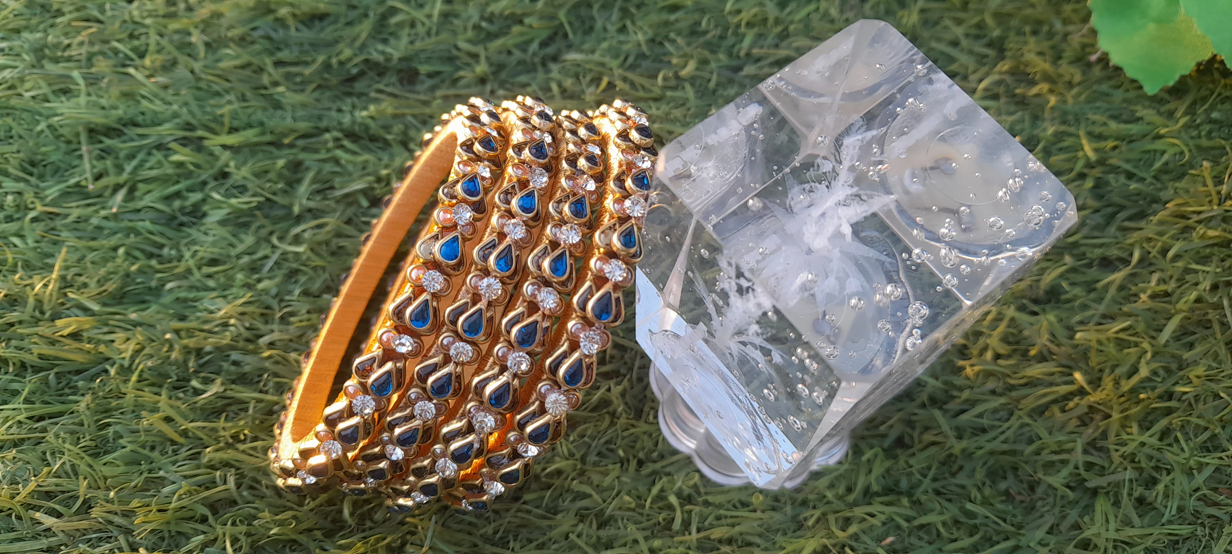 Handcrafted blue kundan bangles designed to add royal charm to your festive and traditional looks 💙 Perfect blend of grace, sparkle, and timeless beauty.